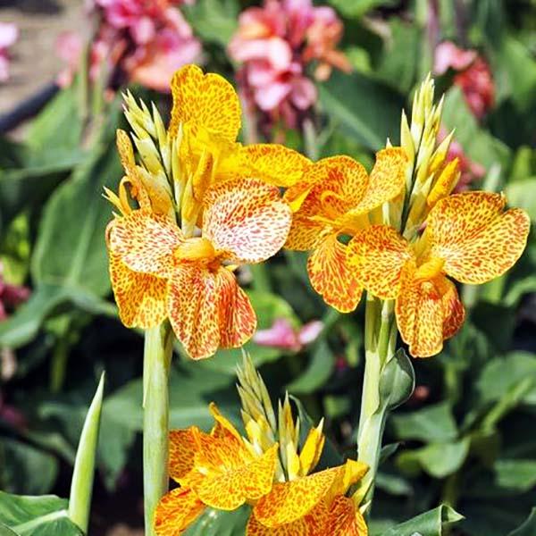Высота растения достигает 70-90 см, что позволяет использовать его как в одиночных посадках, так и в композициях с другими цветами. Клубни канны Пикассо легко переносят зимовку в прохладных условиях, что делает их идеальным выбором для многолетнего выращивания.