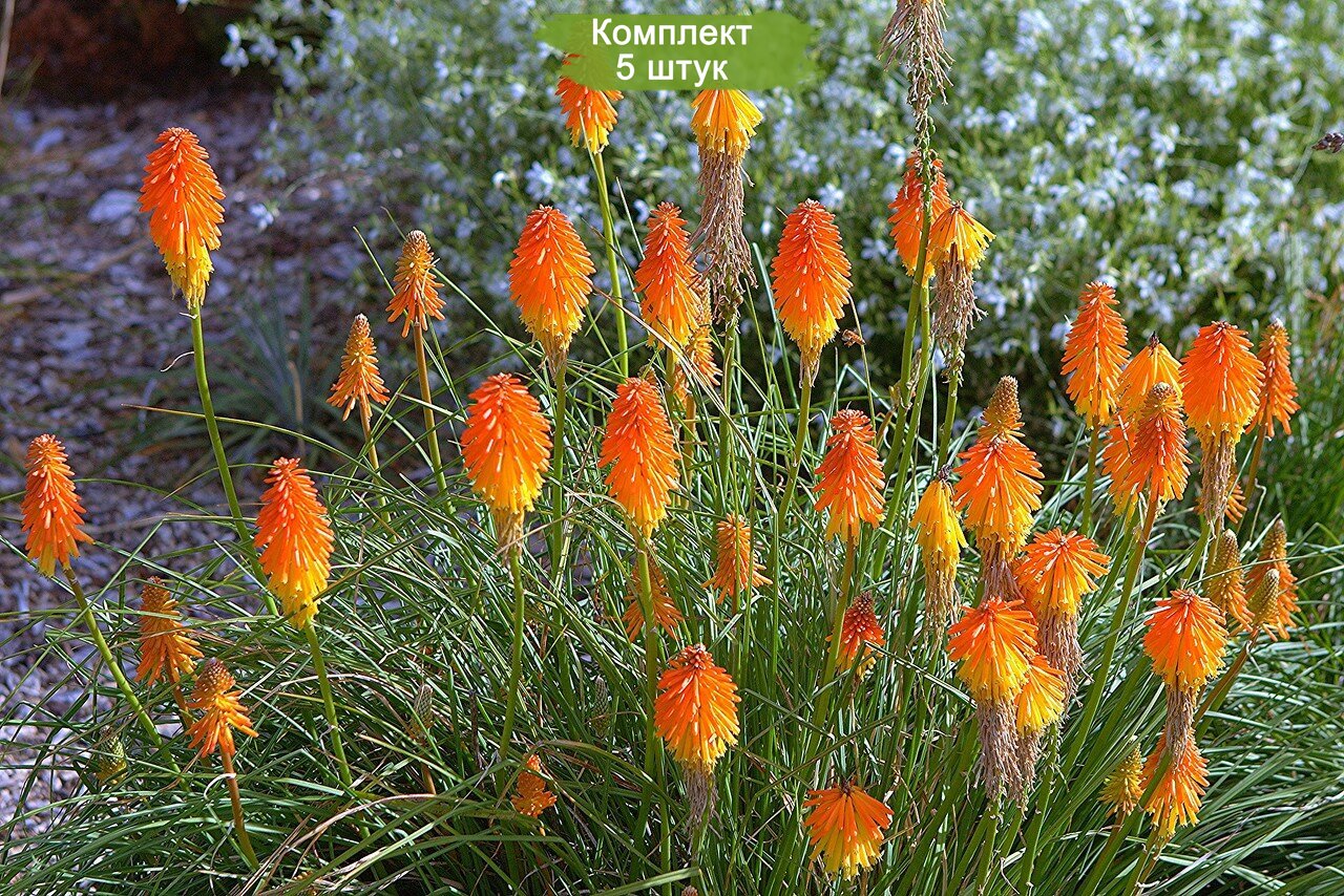 В комплекте – 5 здоровых и крепких саженцев, готовых к высадке в открытый грунт. Добавьте книфофию ягодную "Эскимо" в свой сад, и она будет радовать вас своим цветением с середины лета до осени.